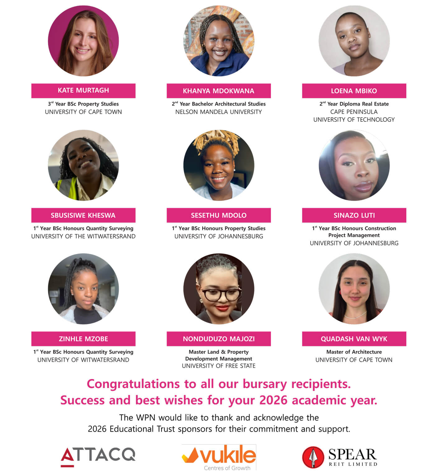 Through our Educational Trust, WPN strives to offer bursaries to previously disadvantaged female students studying towards a property related degree or diploma.